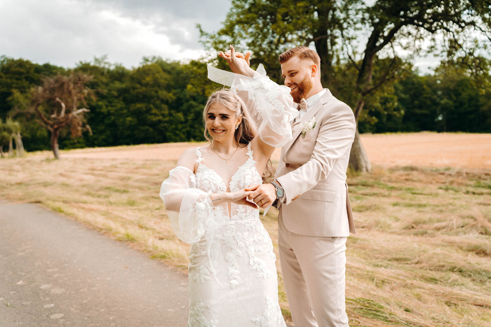 Auch für Hochzeitsfotos ist das Einhaus Möttau eine wahre Fundgrube an romantischen Motiven. Die wunderschöne Umgebung mit weiten Feldern, den alten Bäumen und der rustikalen Fachwerkfassade bietet unzählige Kulissen für einzigartige und emotionale Aufnahmen. Die Hochzeitspaare können in der Abendsonne romantische Fotos auf den umliegenden Wiesen machen oder das historische Gebäude als Kulisse nutzen – jede Aufnahme spiegelt den ländlichen Charme und die Ruhe des Ortes wider. Besonders die natürlichen Farben und die unberührte Umgebung machen die Hochzeitsfotos zu einer bleibenden Erinnerung.