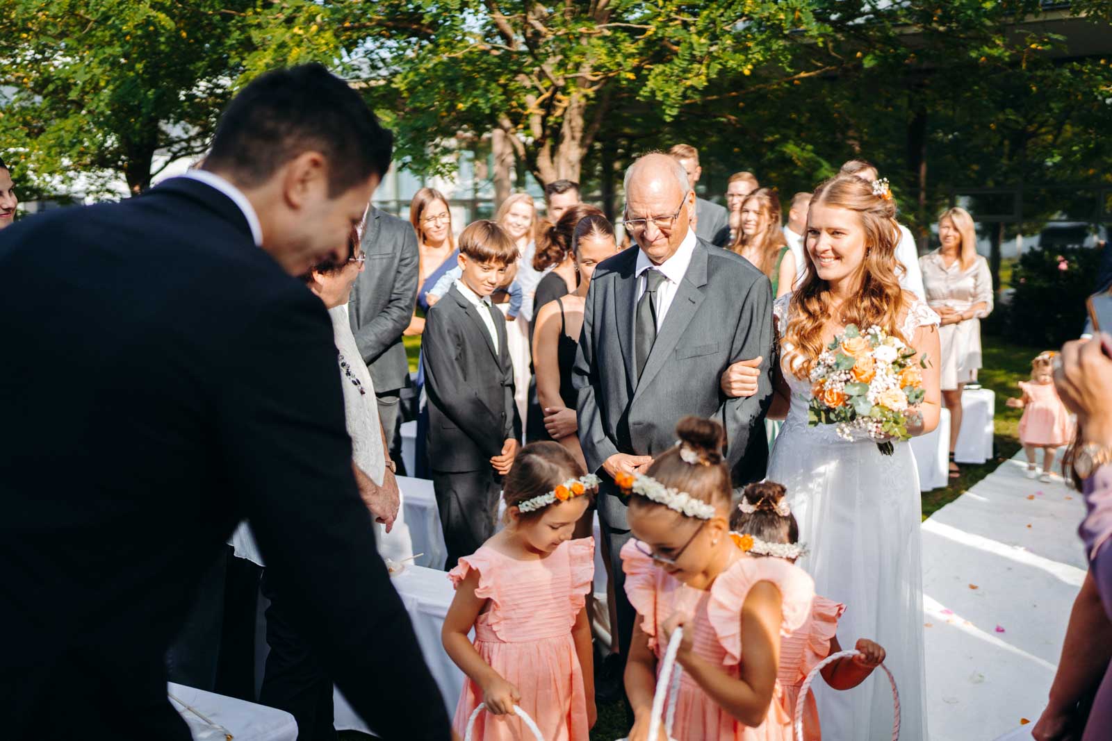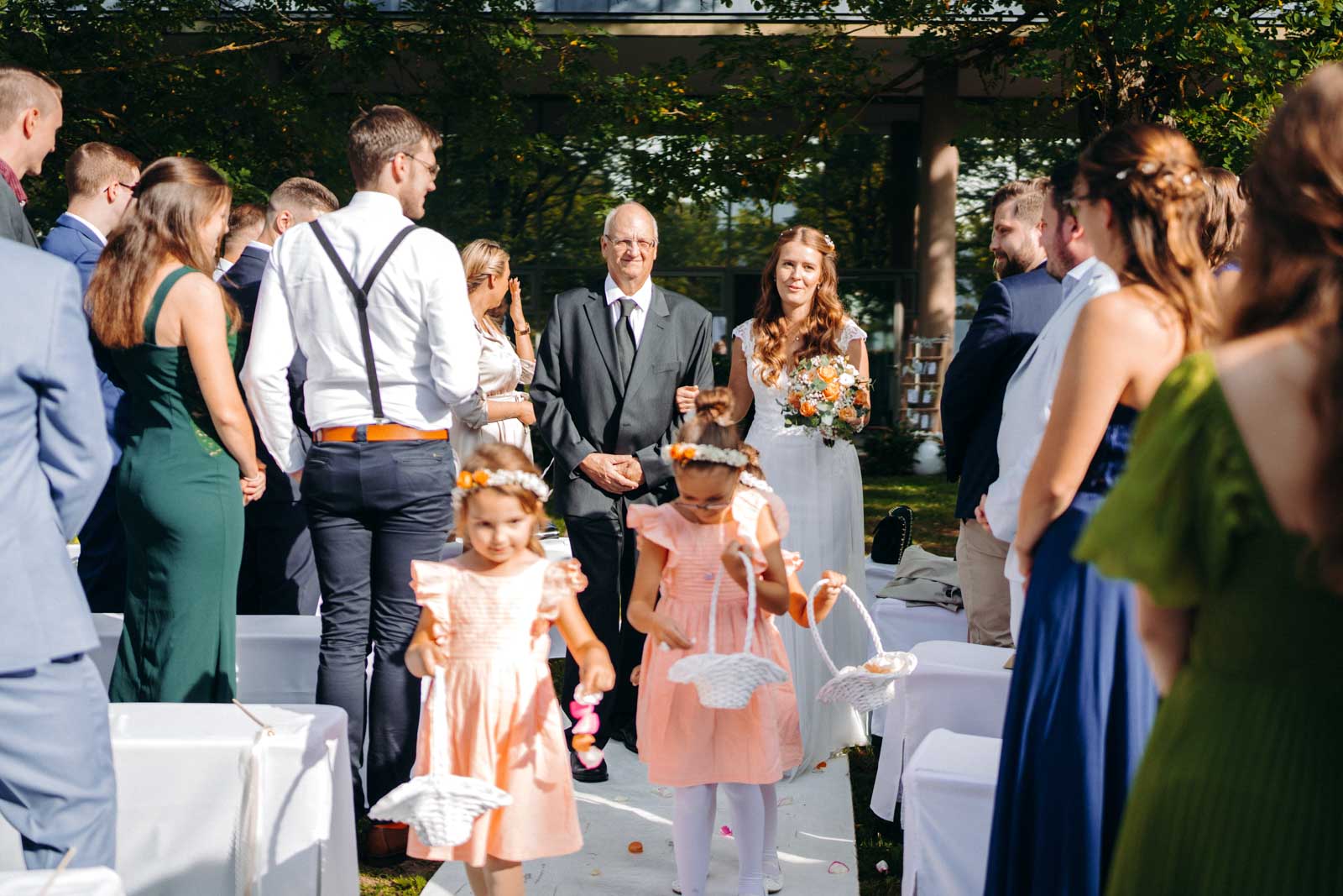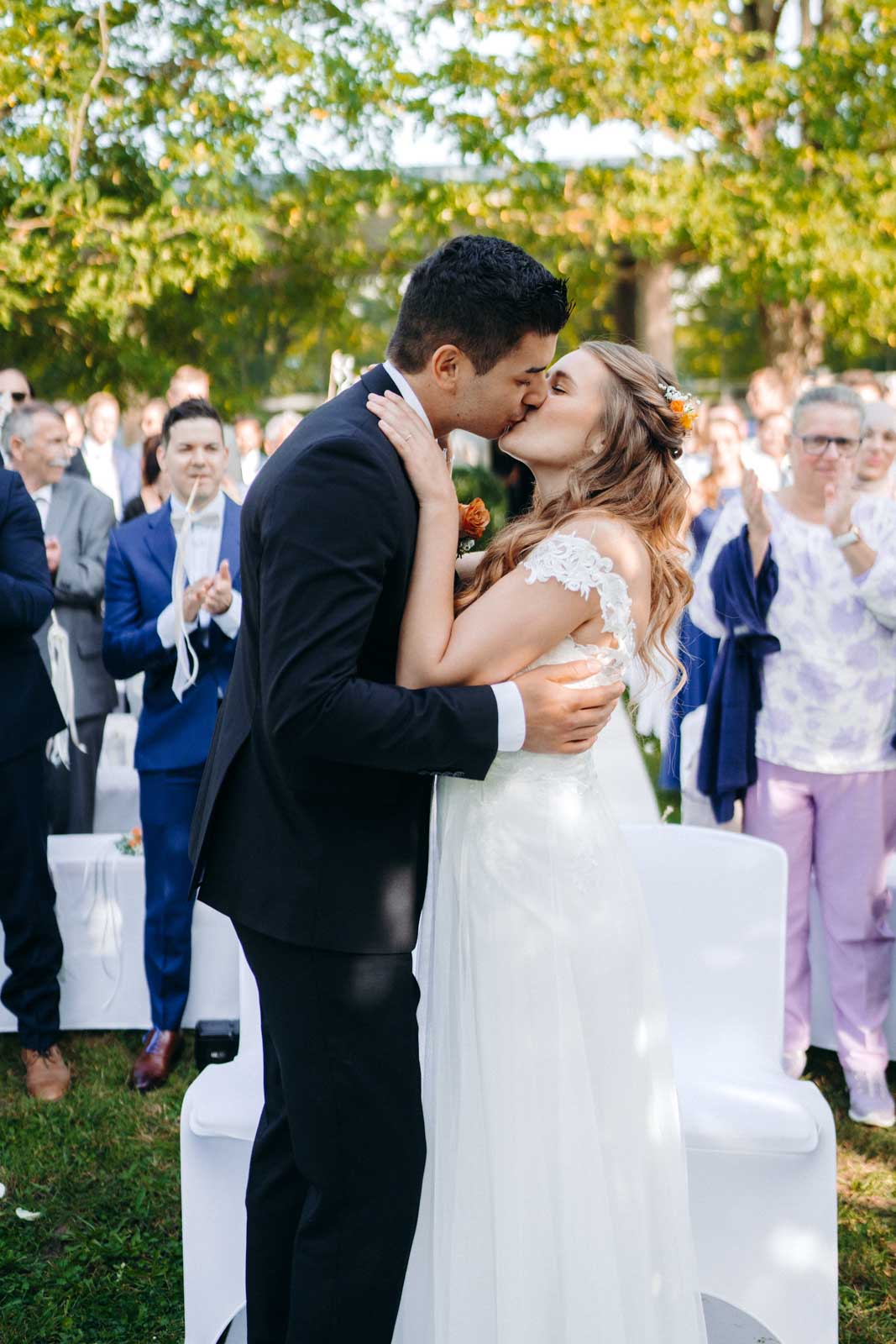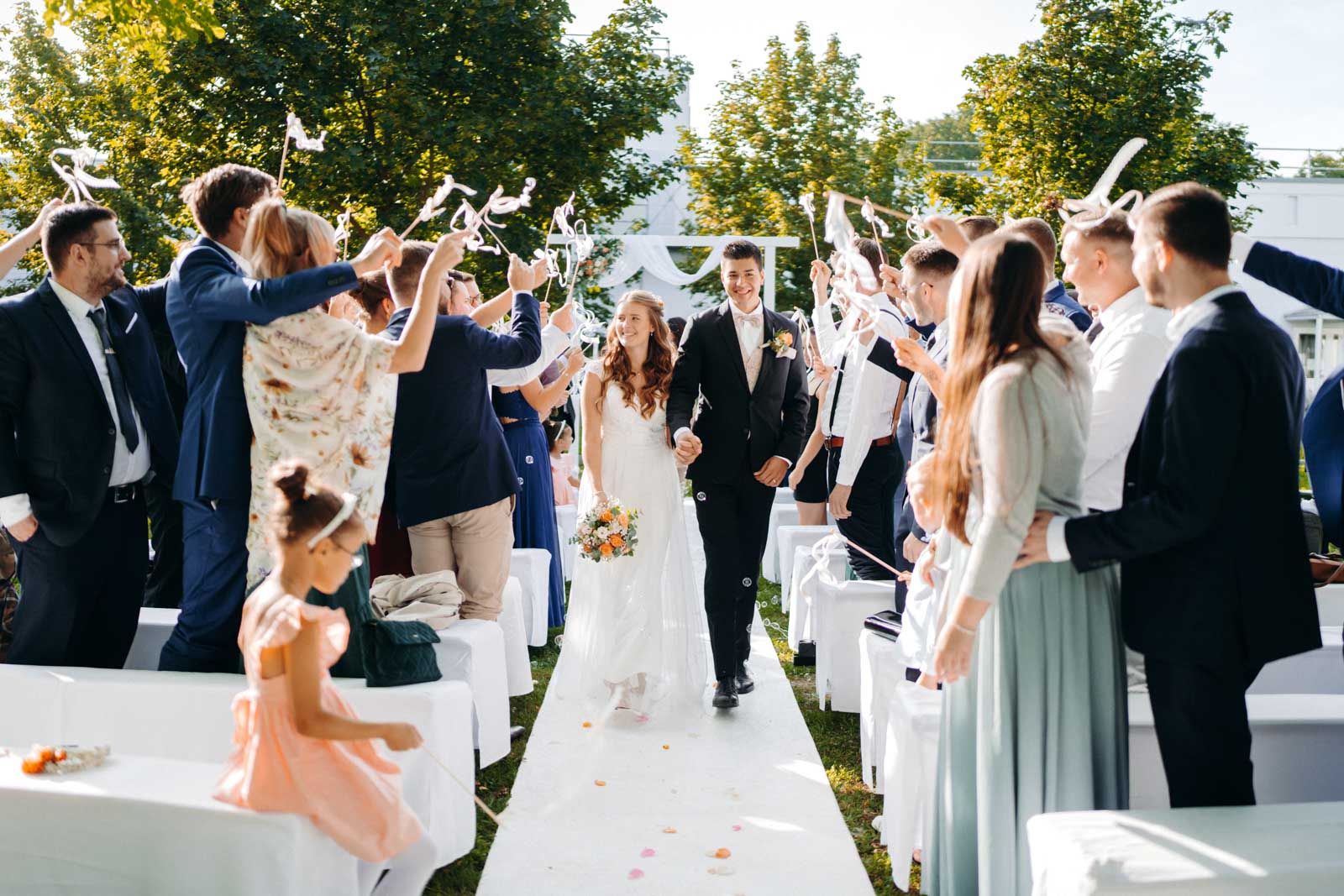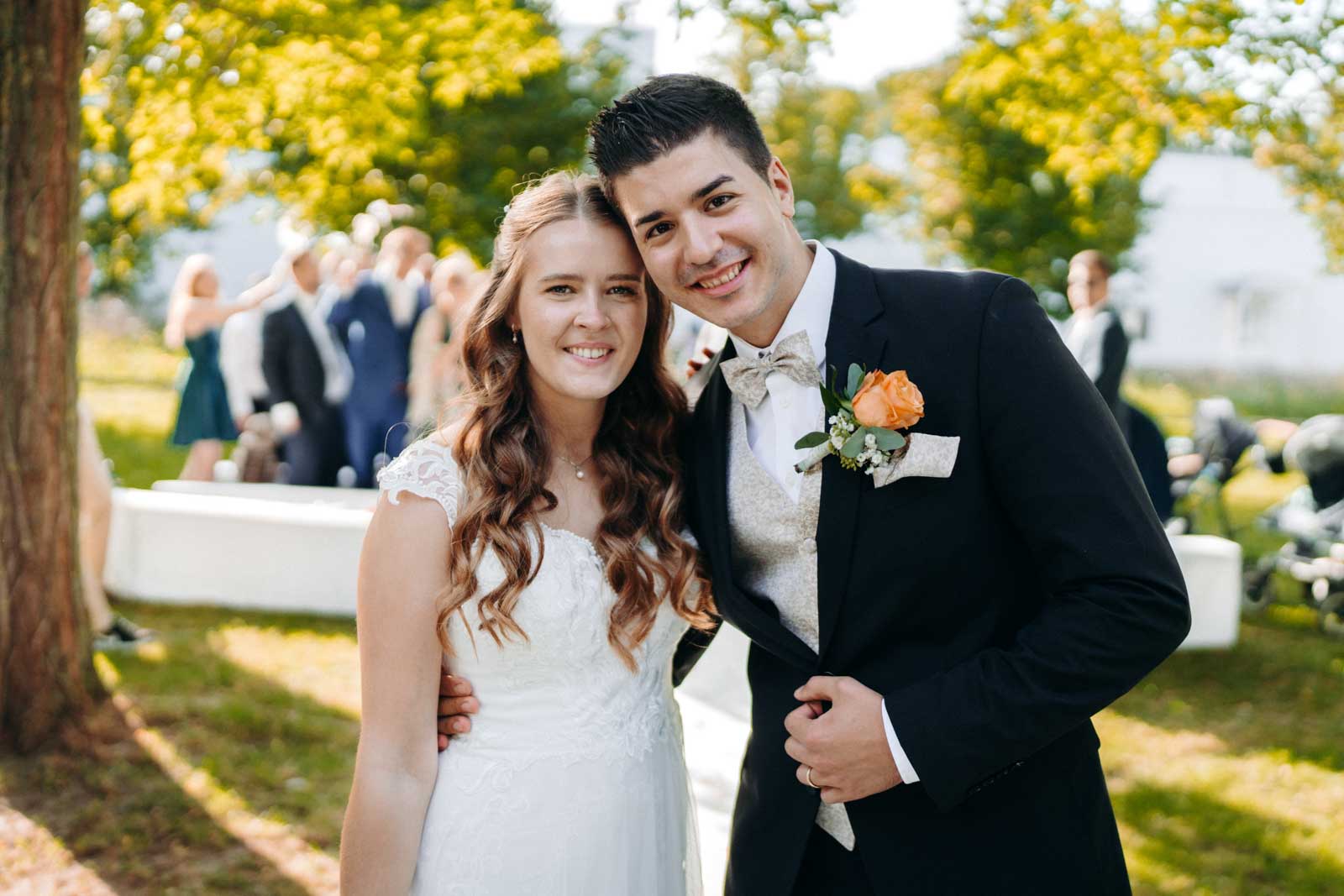 Die Eventlocation verfügt über einen malerischen Außenbereich, der sich ideal für romantische Hochzeitszeremonien und Fotoshootings eignet. Umgeben von Grünflächen und modernen Architekturelementen bietet dieser Bereich die perfekte Kulisse für unvergessliche Momente.