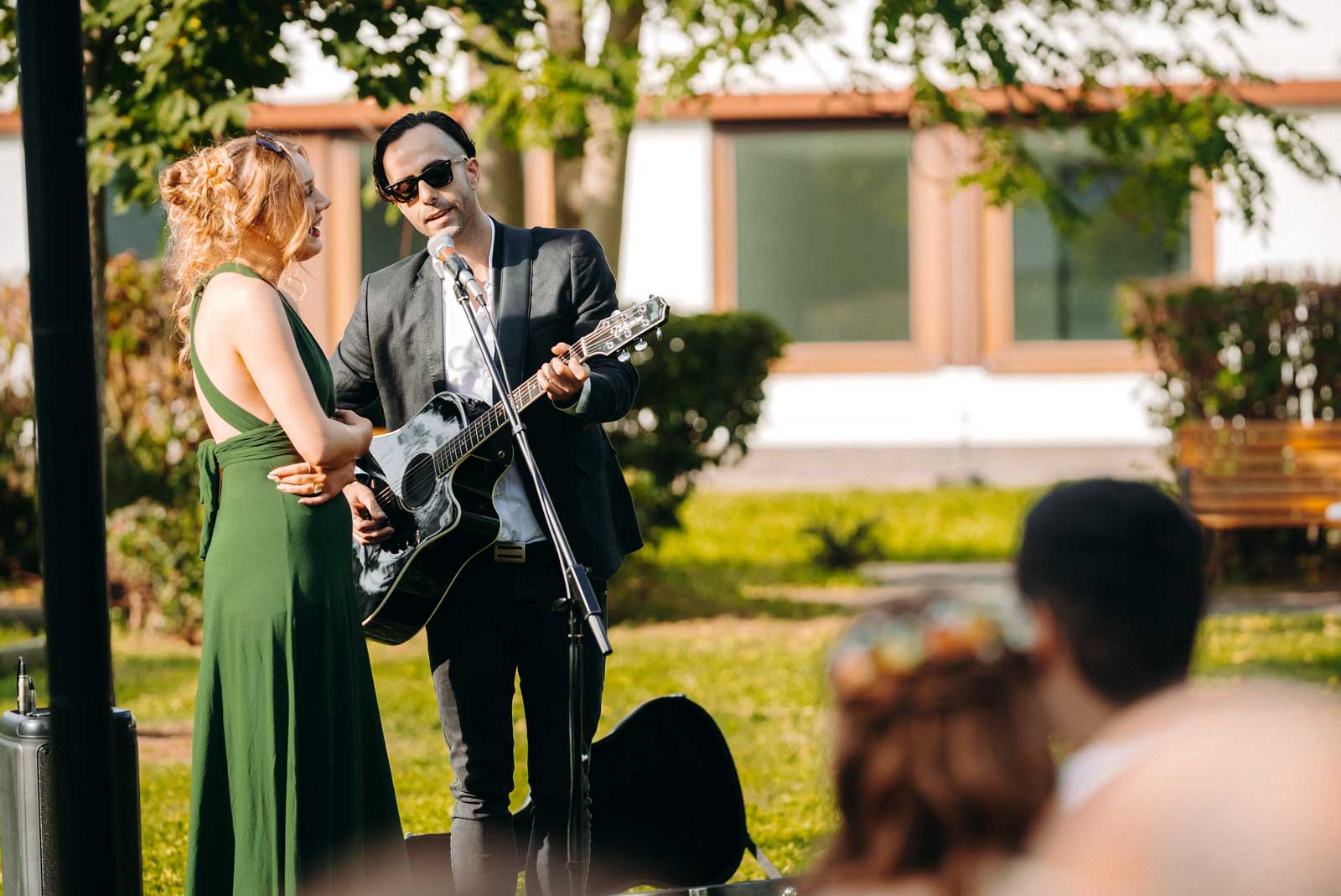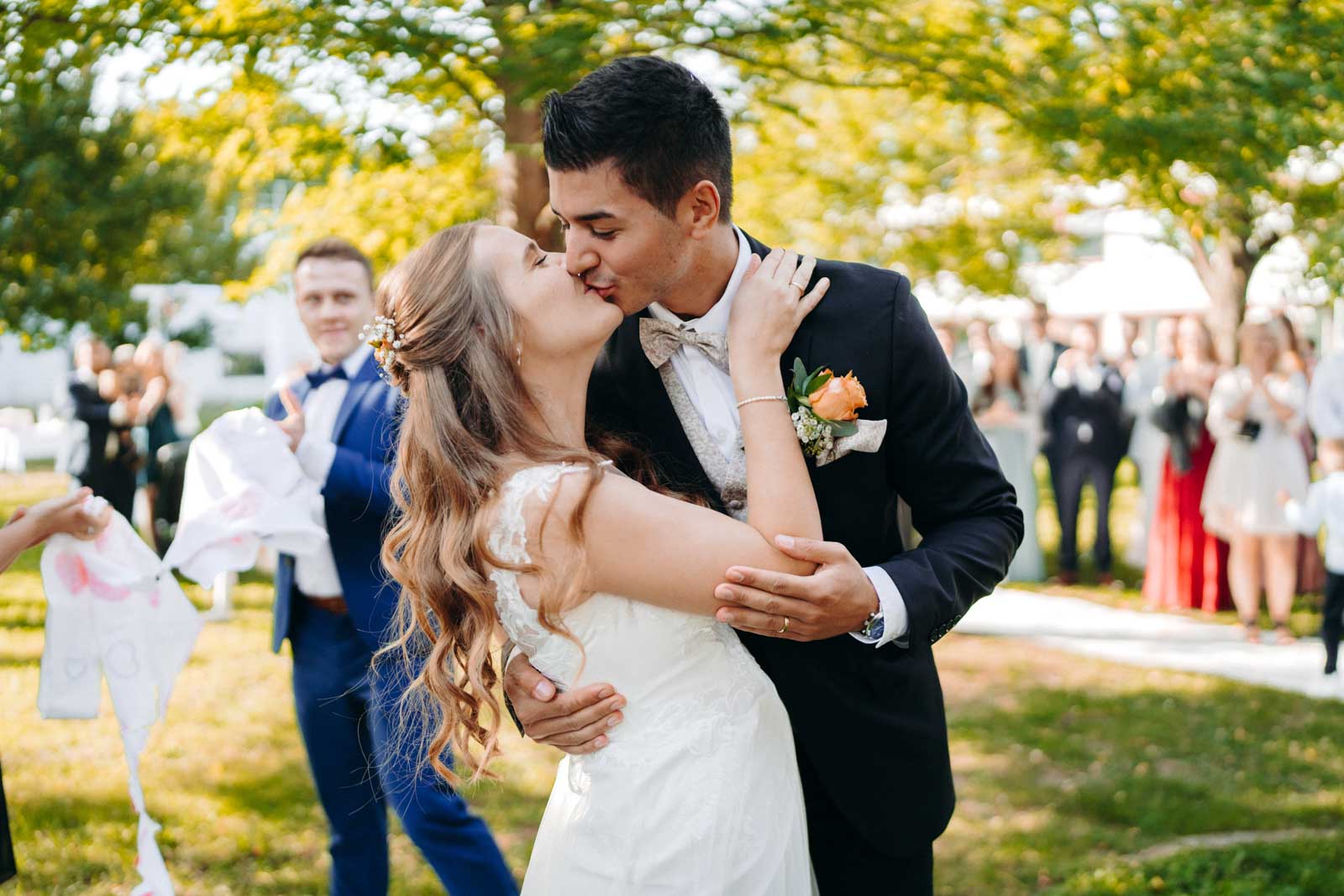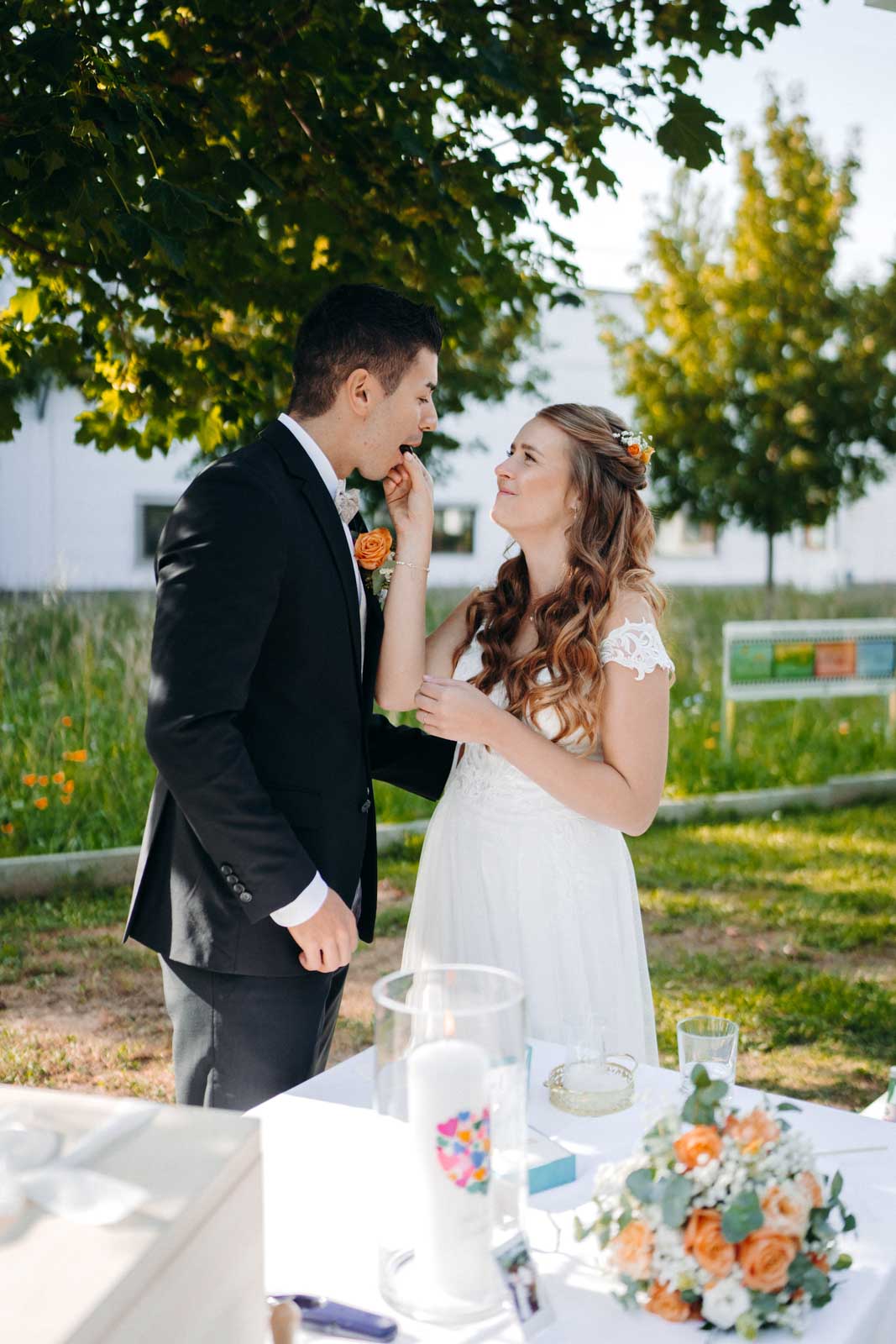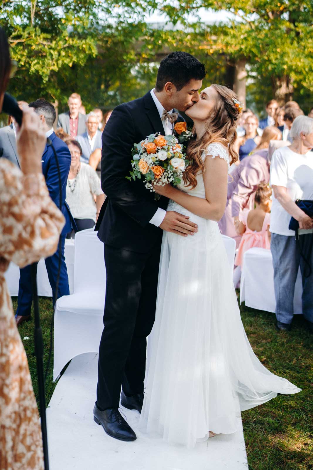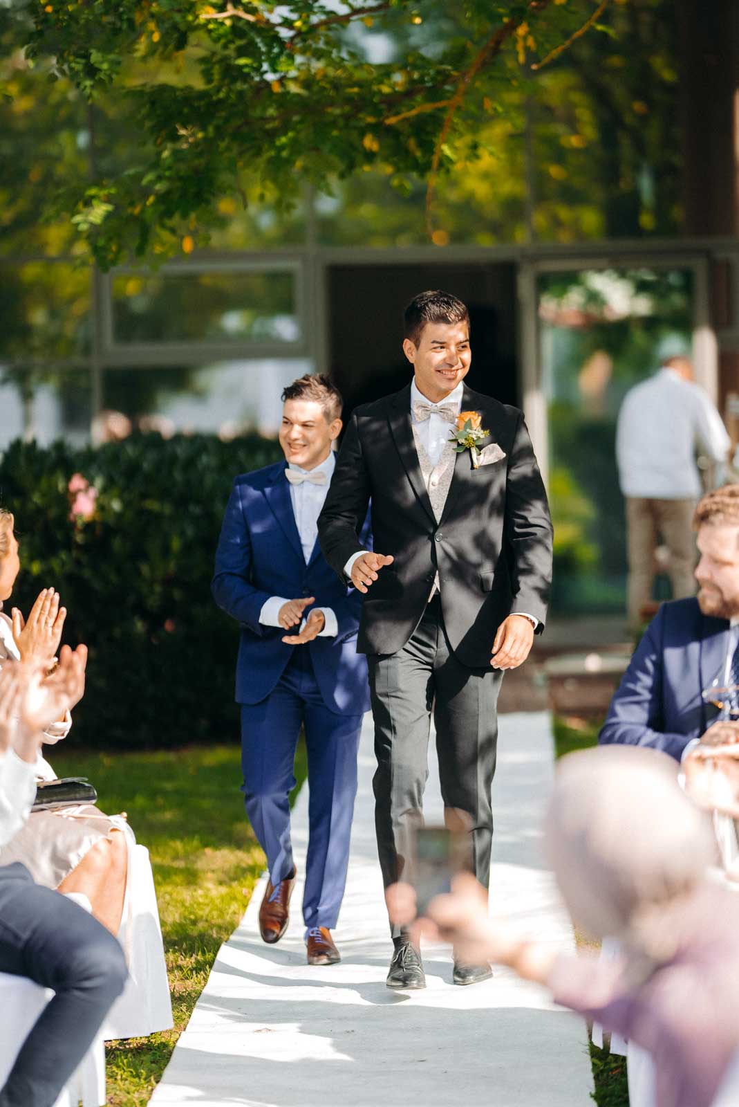 Die Eventlocation verfügt über einen malerischen Außenbereich, der sich ideal für romantische Hochzeitszeremonien und Fotoshootings eignet. Umgeben von Grünflächen und modernen Architekturelementen bietet dieser Bereich die perfekte Kulisse für unvergessliche Momente.