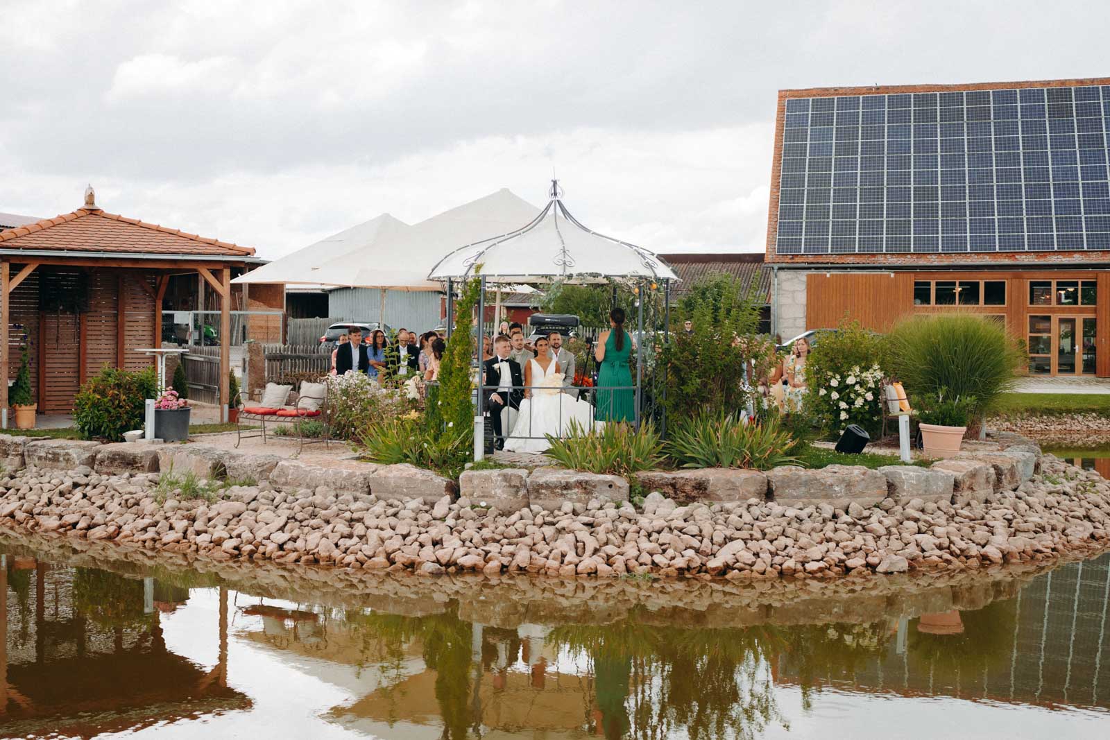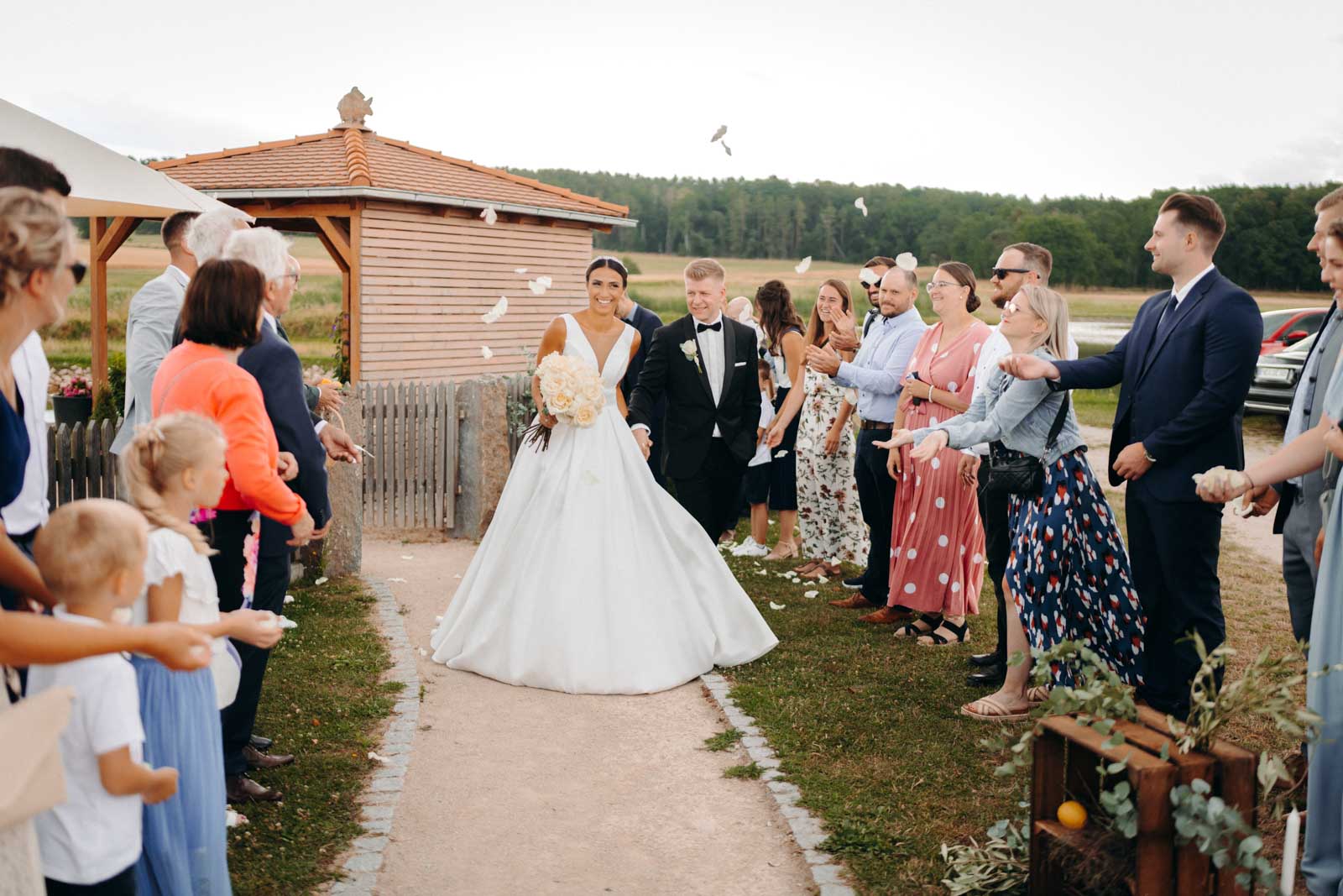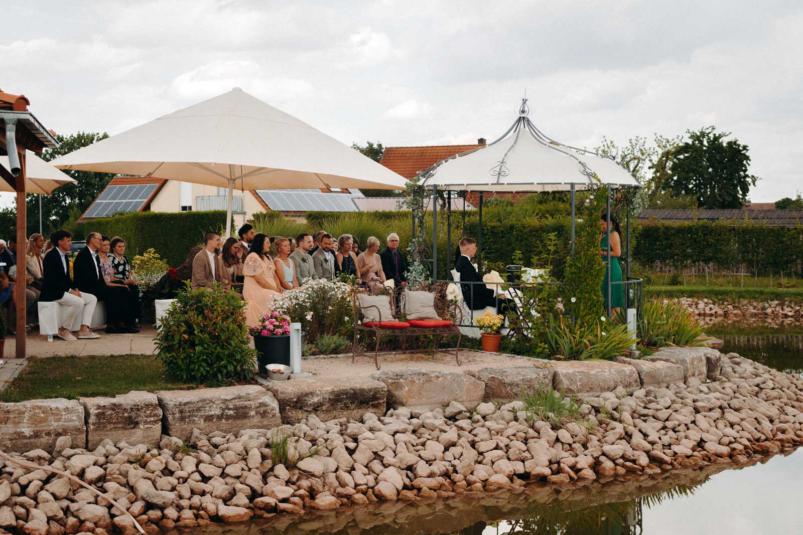 Die Geiershofstube ermöglicht Freiluft-Hochzeitszeremonien im hauseigenen Garten. Unter blauem Himmel und umgeben von grüner Natur können Paare ihre Liebe in einer romantischen Kulisse bekunden. Dies verleiht der Hochzeit eine besonders persönliche Note.
