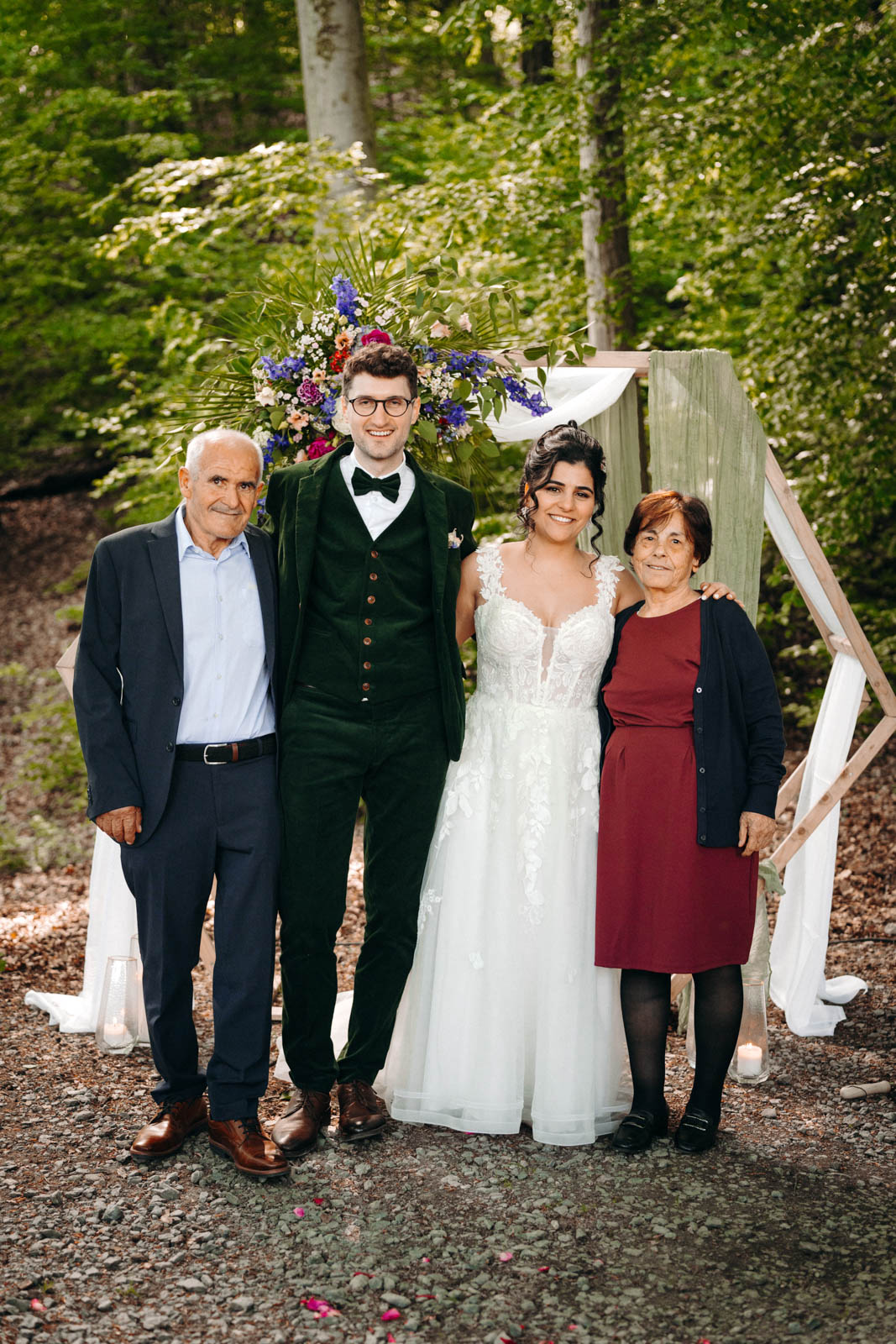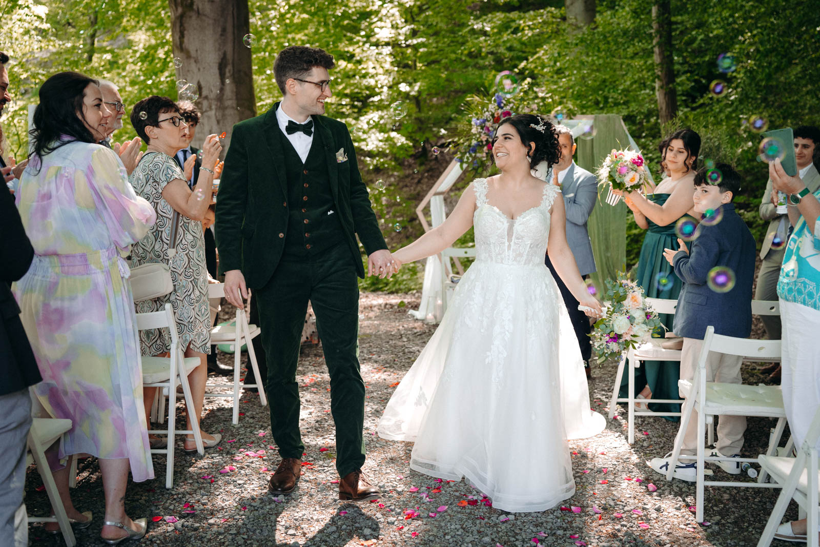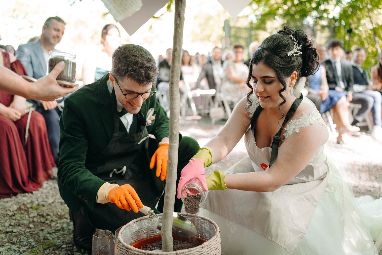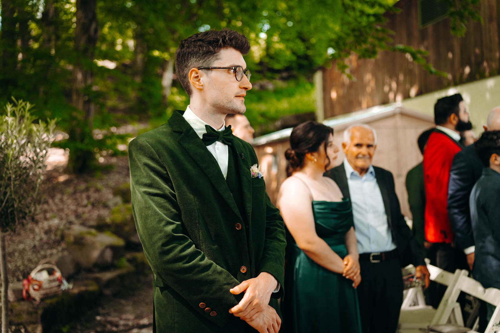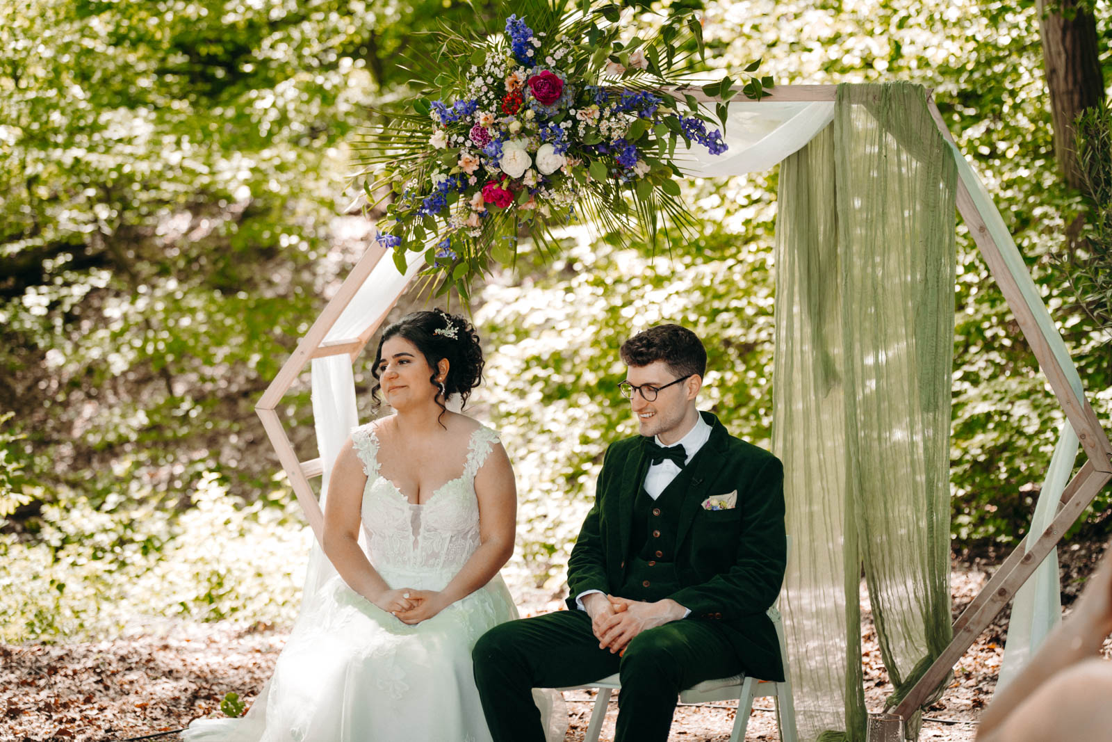 Das Highlight der Trauung von Selda und Konstantin war die Zeremonie, die unter dem großen Baum im Garten der Villa stattfand. Der majestätische Baum bot nicht nur eine malerische Kulisse, sondern symbolisierte auch Stärke, Beständigkeit und das tiefe Wurzelnschlagen, das Selda und Konstantin in ihrer Beziehung verbinden wollte. Der Baum, umgeben von üppigem Grün und blühenden Wiesen, verlieh der Trauung einen besonders magischen Touch. Die Atmosphäre war ruhig, naturverbunden und voller Bedeutung. Umgeben von Familie und Freunden sprachen Selda und Konstantin hier ihre Eheversprechen und gaben sich das Ja-Wort – ein Moment voller Emotionen und Liebe, den die Hochzeitsfotografin perfekt einfangen konnte.