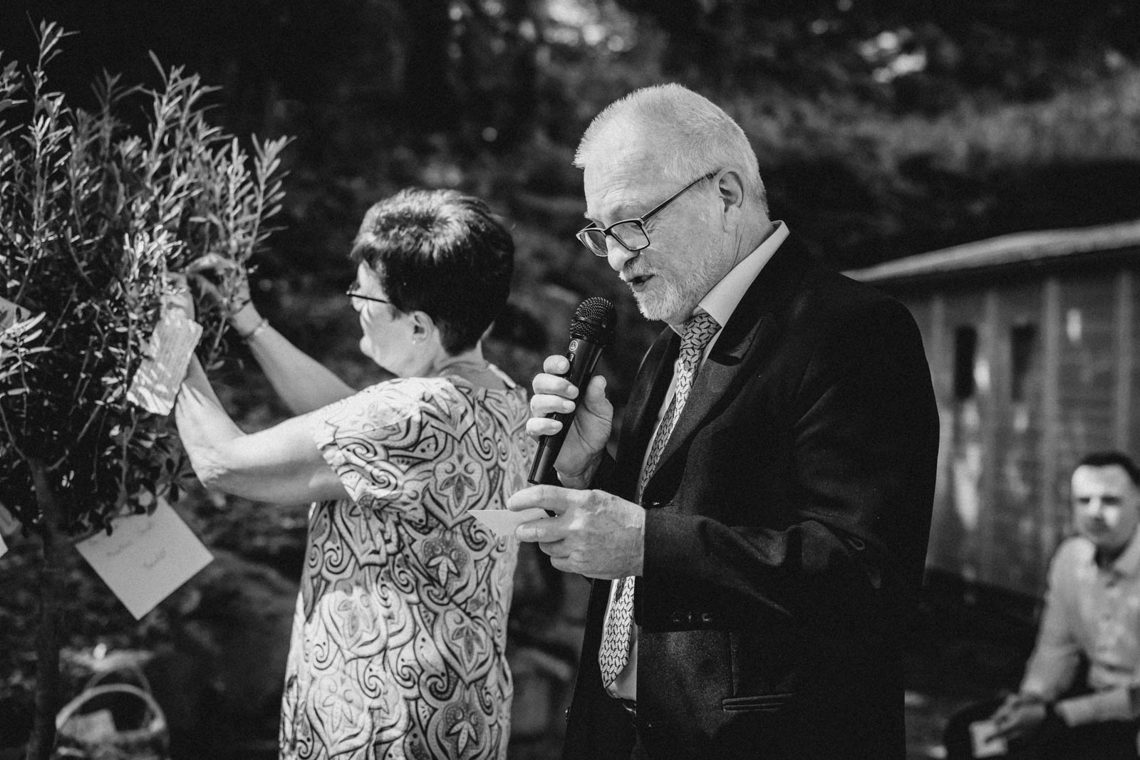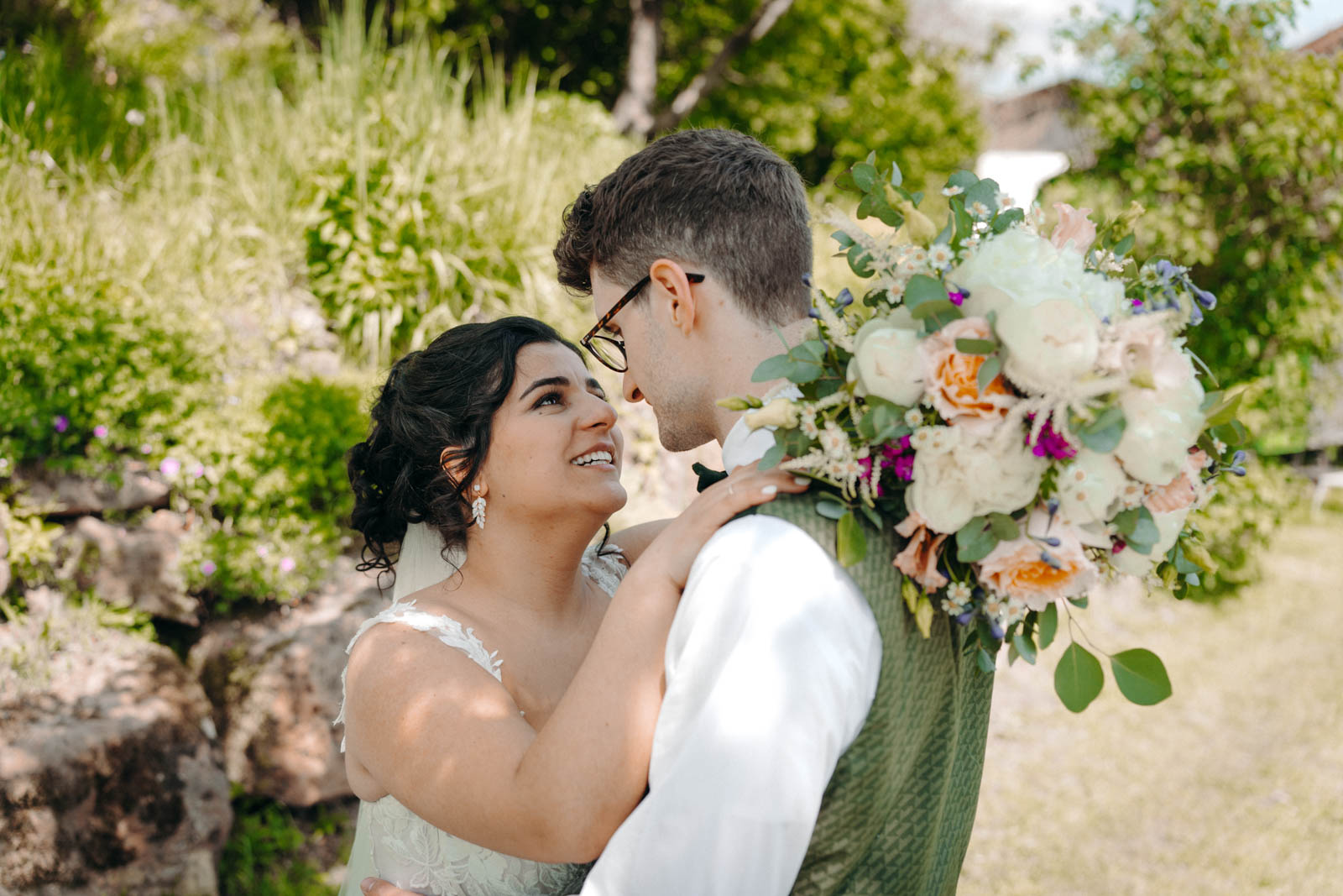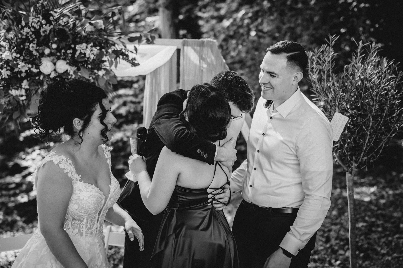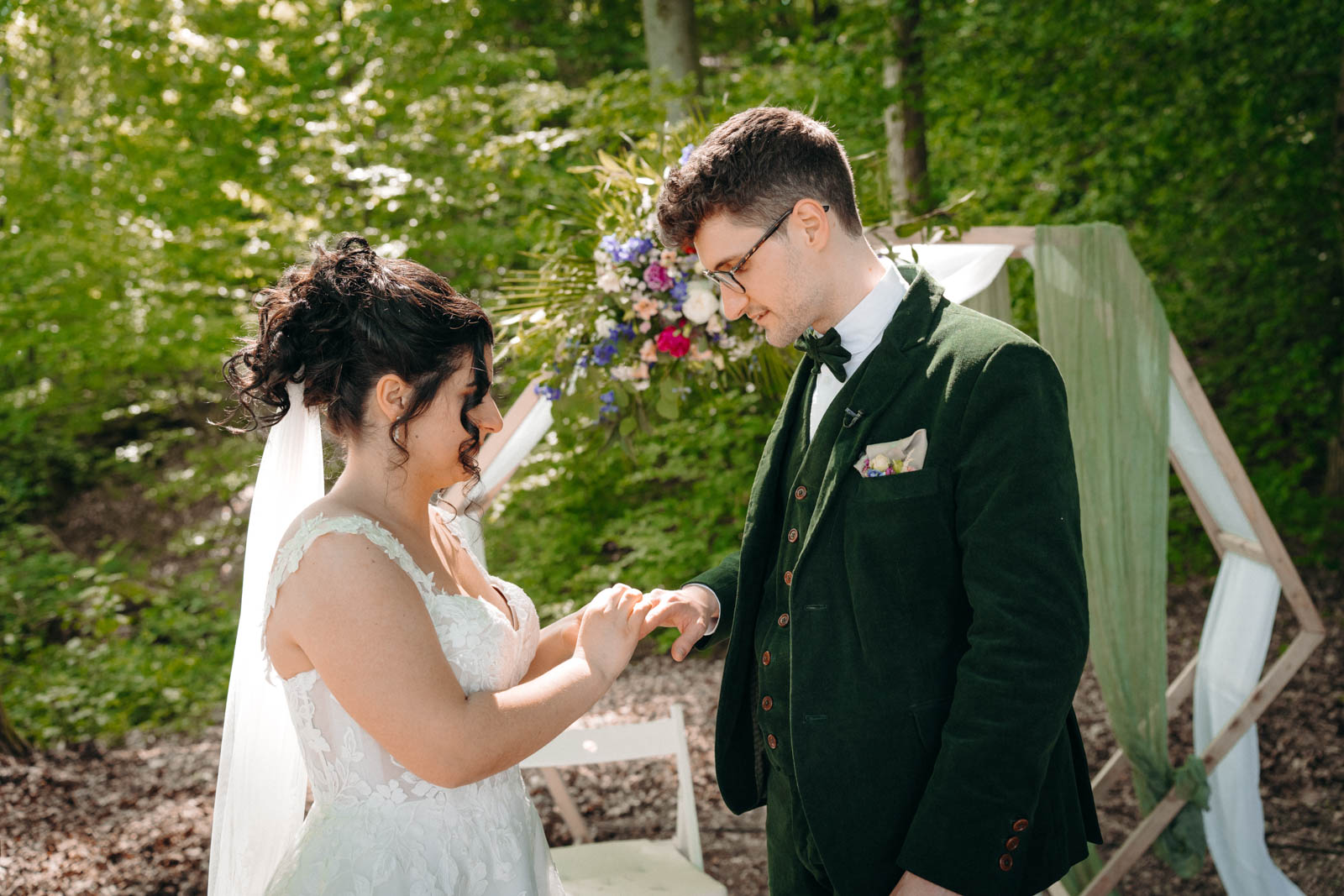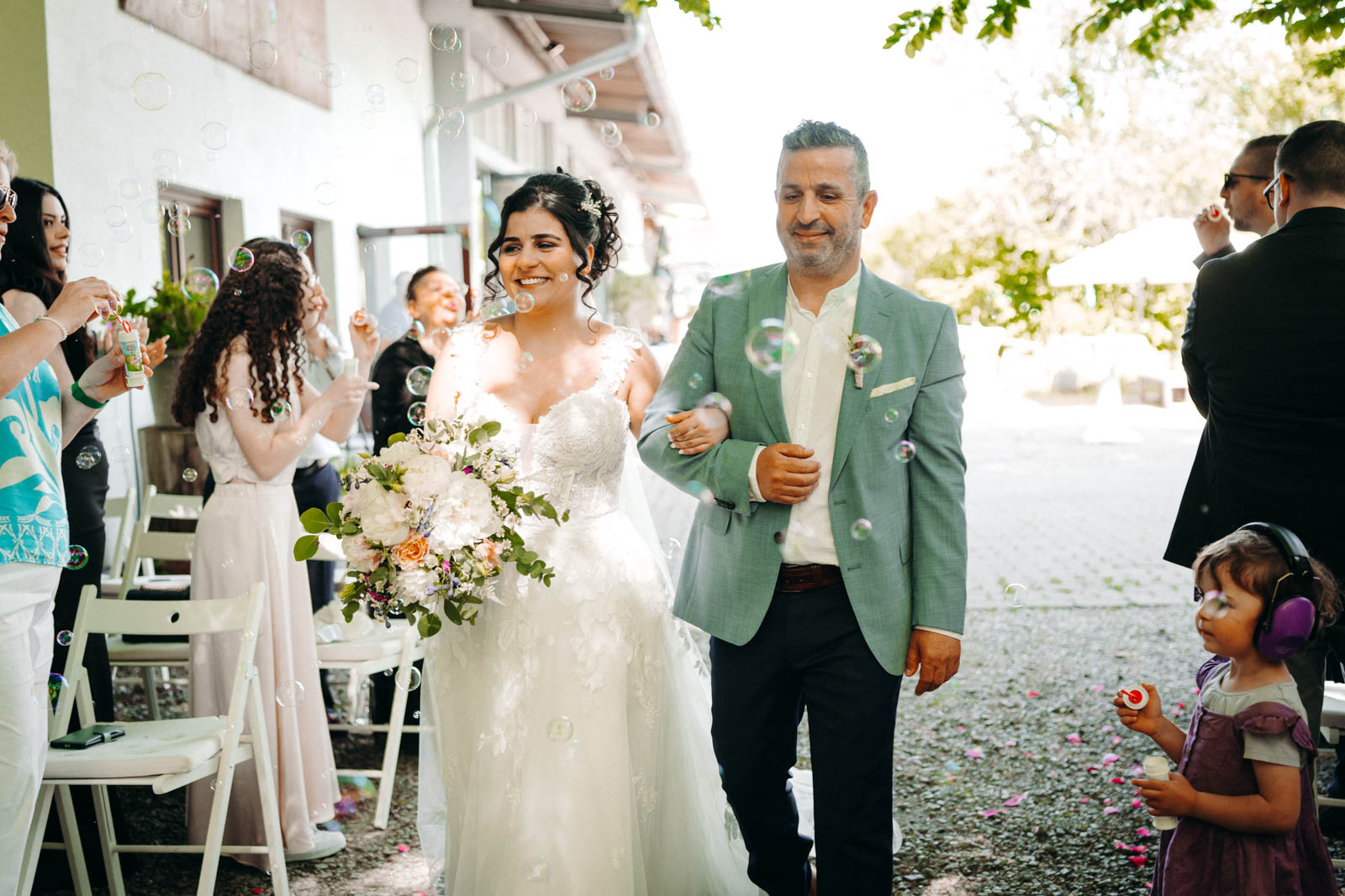 Das Highlight der Trauung von Selda und Konstantin war die Zeremonie, die unter dem großen Baum im Garten der Villa stattfand. Der majestätische Baum bot nicht nur eine malerische Kulisse, sondern symbolisierte auch Stärke, Beständigkeit und das tiefe Wurzelnschlagen, das Selda und Konstantin in ihrer Beziehung verbinden wollte. Der Baum, umgeben von üppigem Grün und blühenden Wiesen, verlieh der Trauung einen besonders magischen Touch. Die Atmosphäre war ruhig, naturverbunden und voller Bedeutung. Umgeben von Familie und Freunden sprachen Selda und Konstantin hier ihre Eheversprechen und gaben sich das Ja-Wort – ein Moment voller Emotionen und Liebe, den die Hochzeitsfotografin perfekt einfangen konnte.