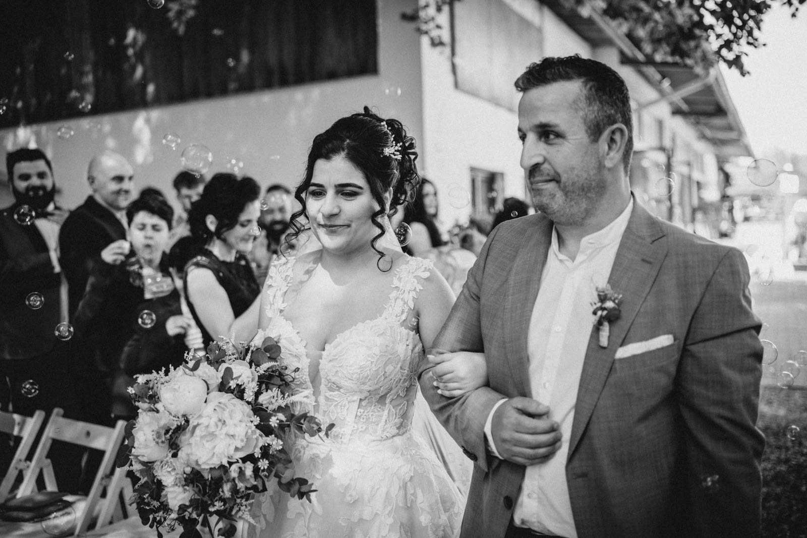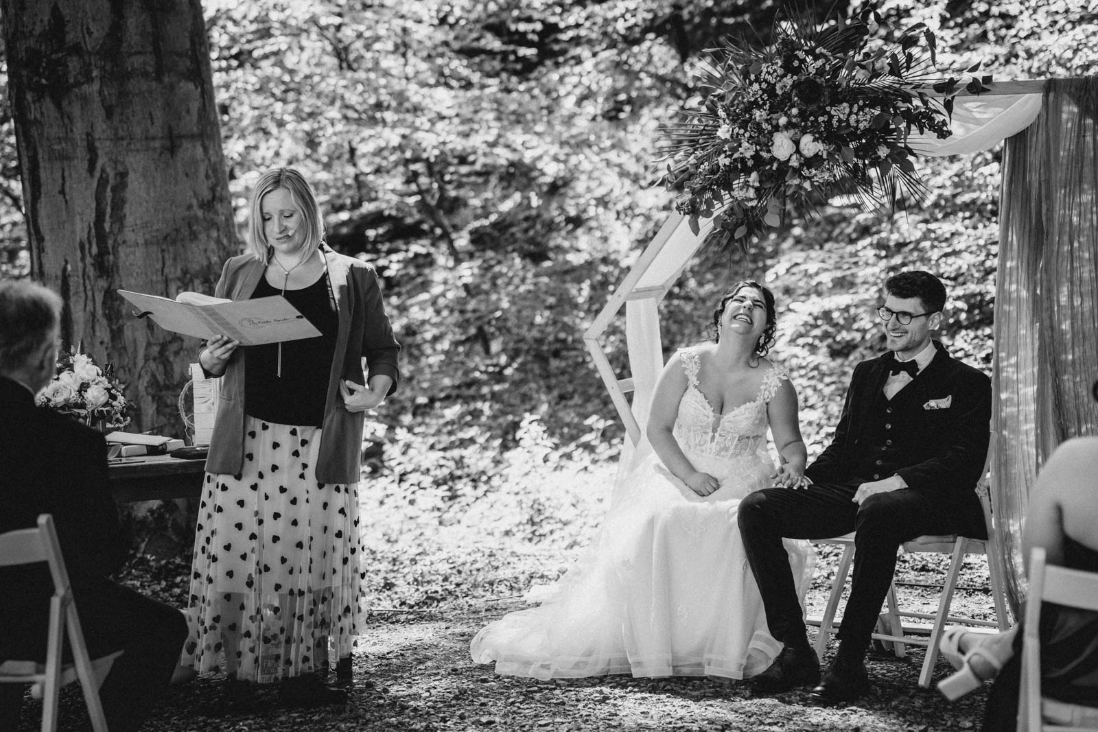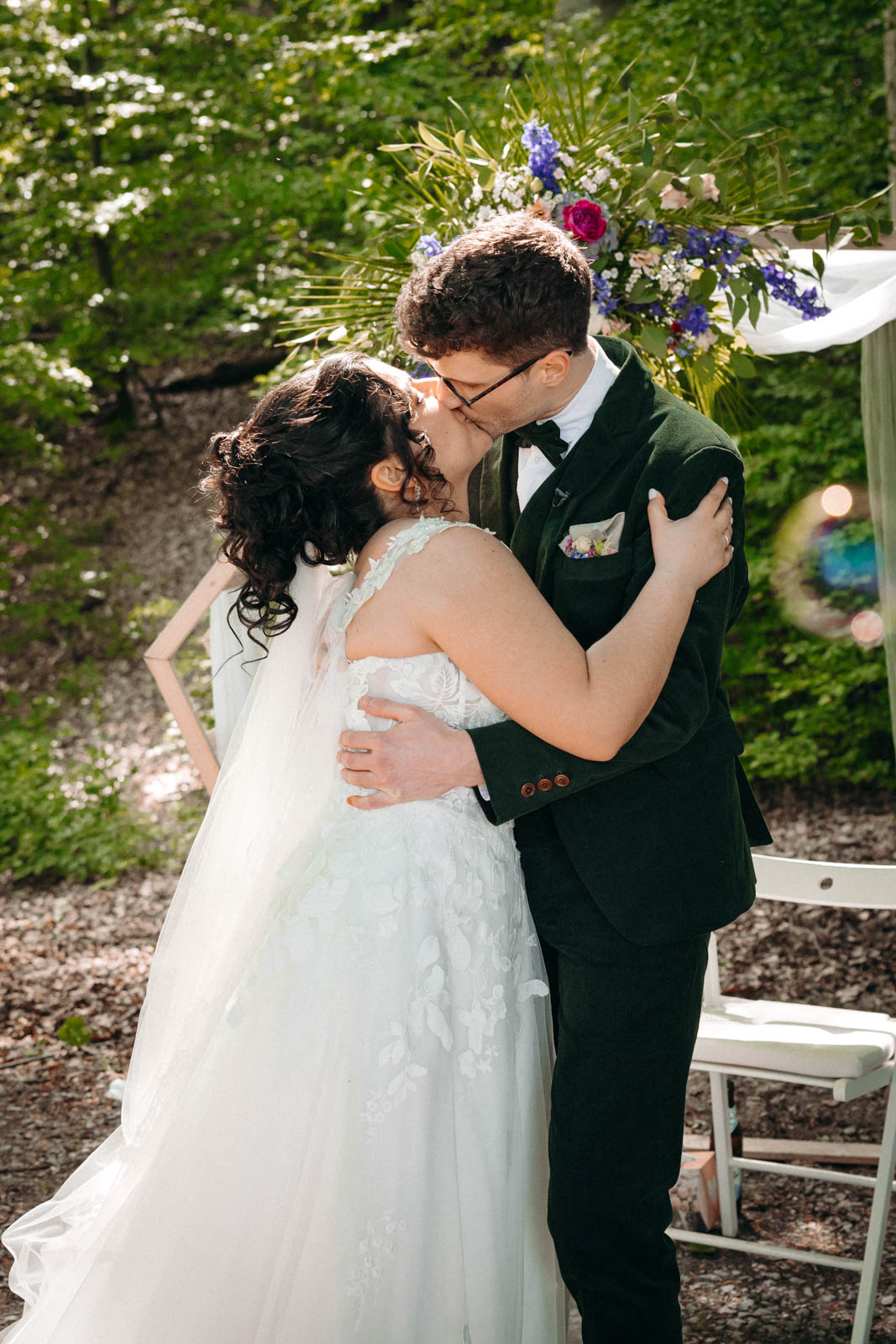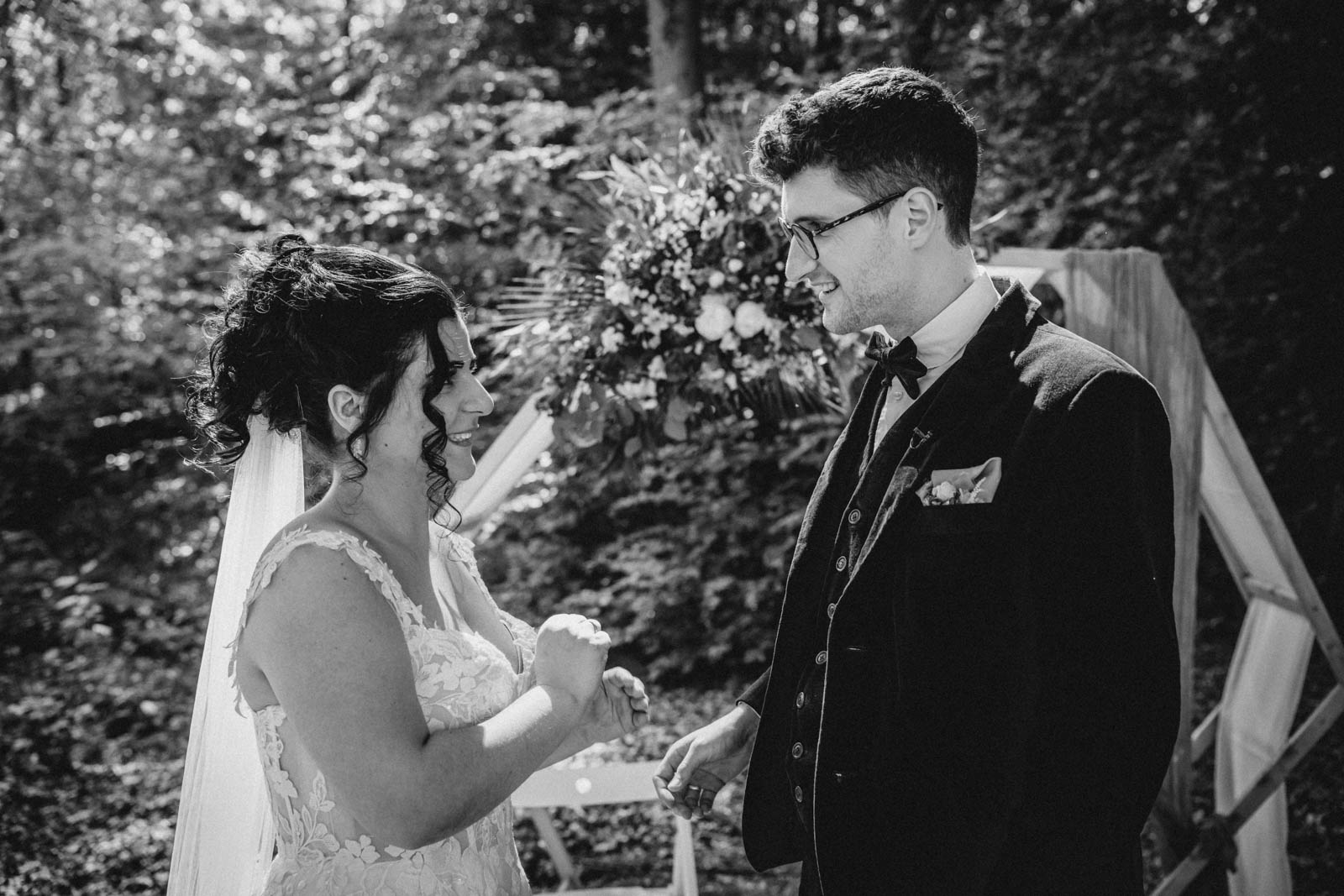 Das Highlight der Trauung von Selda und Konstantin war die Zeremonie, die unter dem großen Baum im Garten der Villa stattfand. Der majestätische Baum bot nicht nur eine malerische Kulisse, sondern symbolisierte auch Stärke, Beständigkeit und das tiefe Wurzelnschlagen, das Selda und Konstantin in ihrer Beziehung verbinden wollte. Der Baum, umgeben von üppigem Grün und blühenden Wiesen, verlieh der Trauung einen besonders magischen Touch. Die Atmosphäre war ruhig, naturverbunden und voller Bedeutung. Umgeben von Familie und Freunden sprachen Selda und Konstantin hier ihre Eheversprechen und gaben sich das Ja-Wort – ein Moment voller Emotionen und Liebe, den die Hochzeitsfotografin perfekt einfangen konnte.