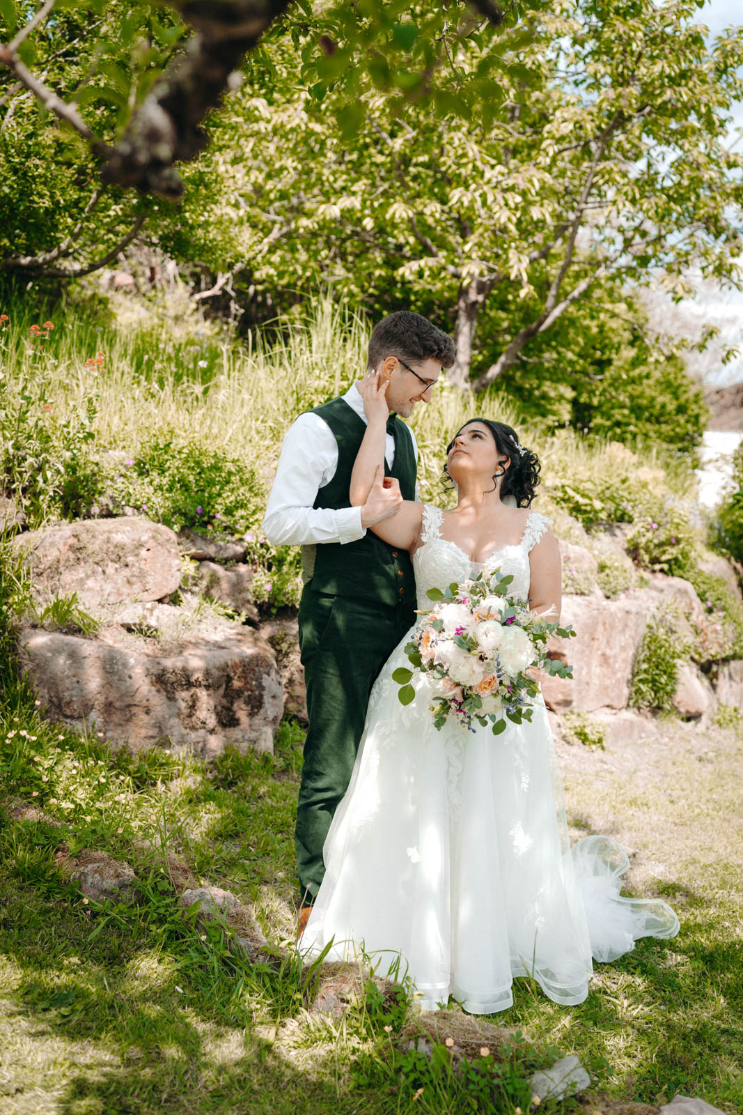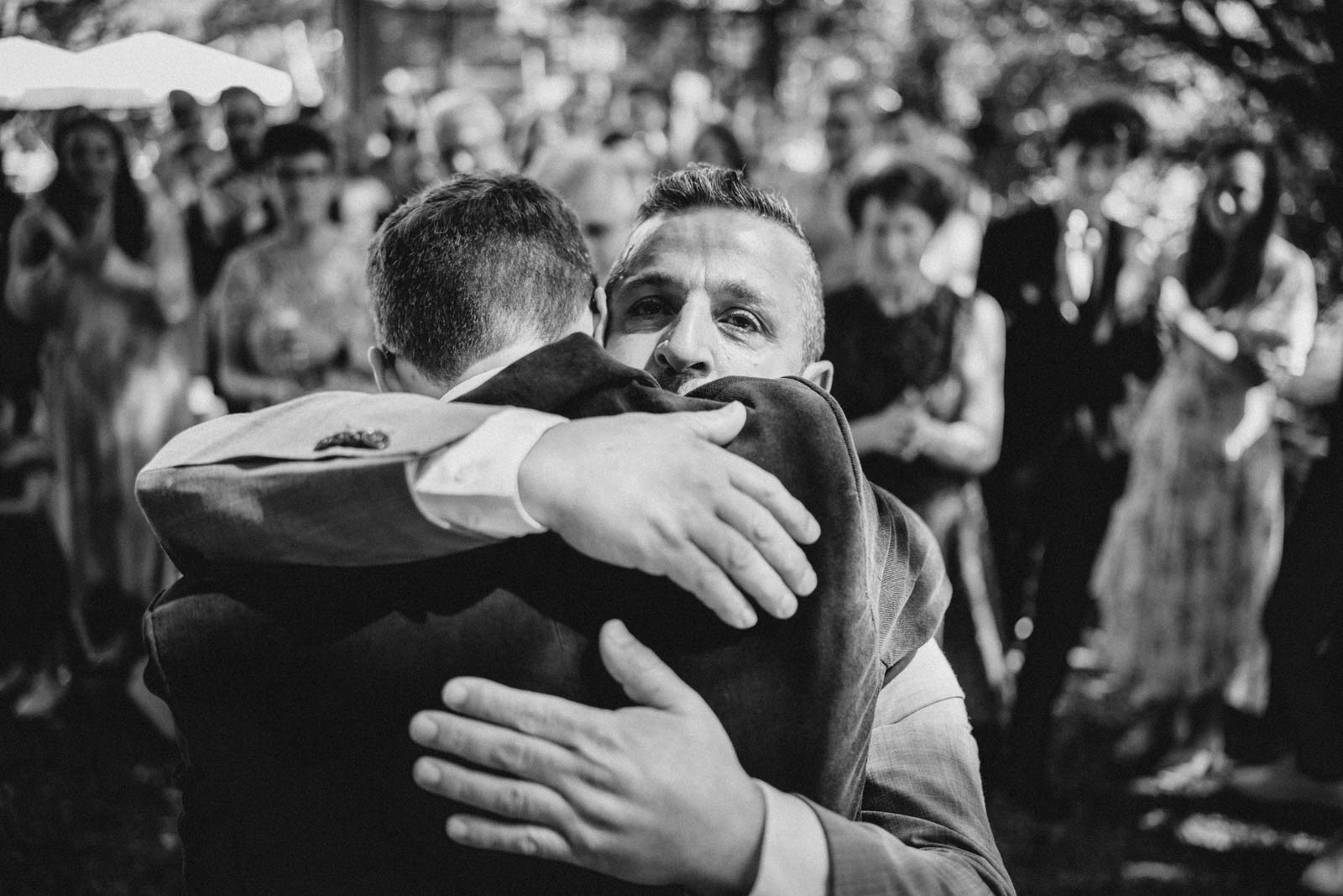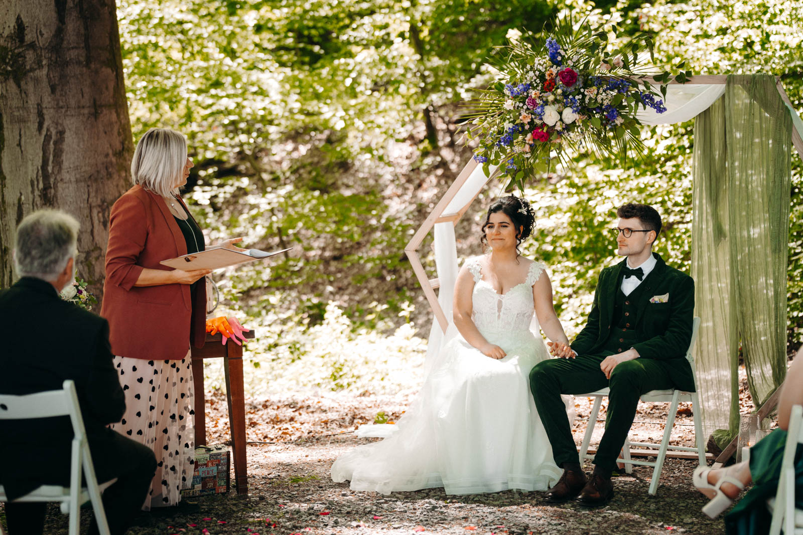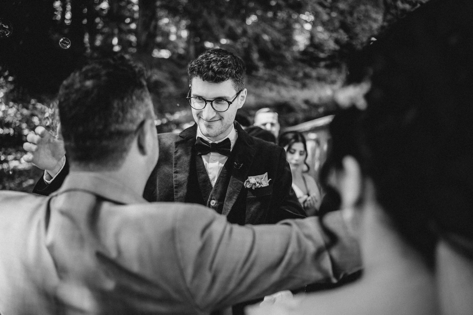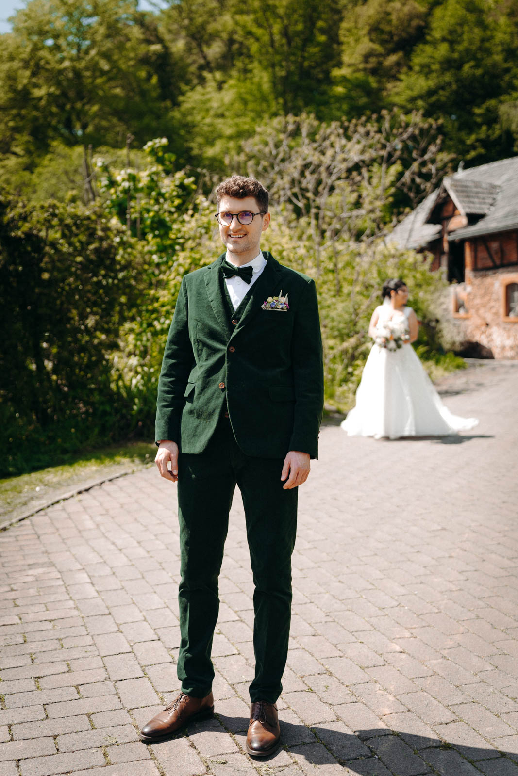 Das Highlight der Trauung von Selda und Konstantin war die Zeremonie, die unter dem großen Baum im Garten der Villa stattfand. Der majestätische Baum bot nicht nur eine malerische Kulisse, sondern symbolisierte auch Stärke, Beständigkeit und das tiefe Wurzelnschlagen, das Selda und Konstantin in ihrer Beziehung verbinden wollte. Der Baum, umgeben von üppigem Grün und blühenden Wiesen, verlieh der Trauung einen besonders magischen Touch. Die Atmosphäre war ruhig, naturverbunden und voller Bedeutung. Umgeben von Familie und Freunden sprachen Selda und Konstantin hier ihre Eheversprechen und gaben sich das Ja-Wort – ein Moment voller Emotionen und Liebe, den die Hochzeitsfotografin perfekt einfangen konnte.