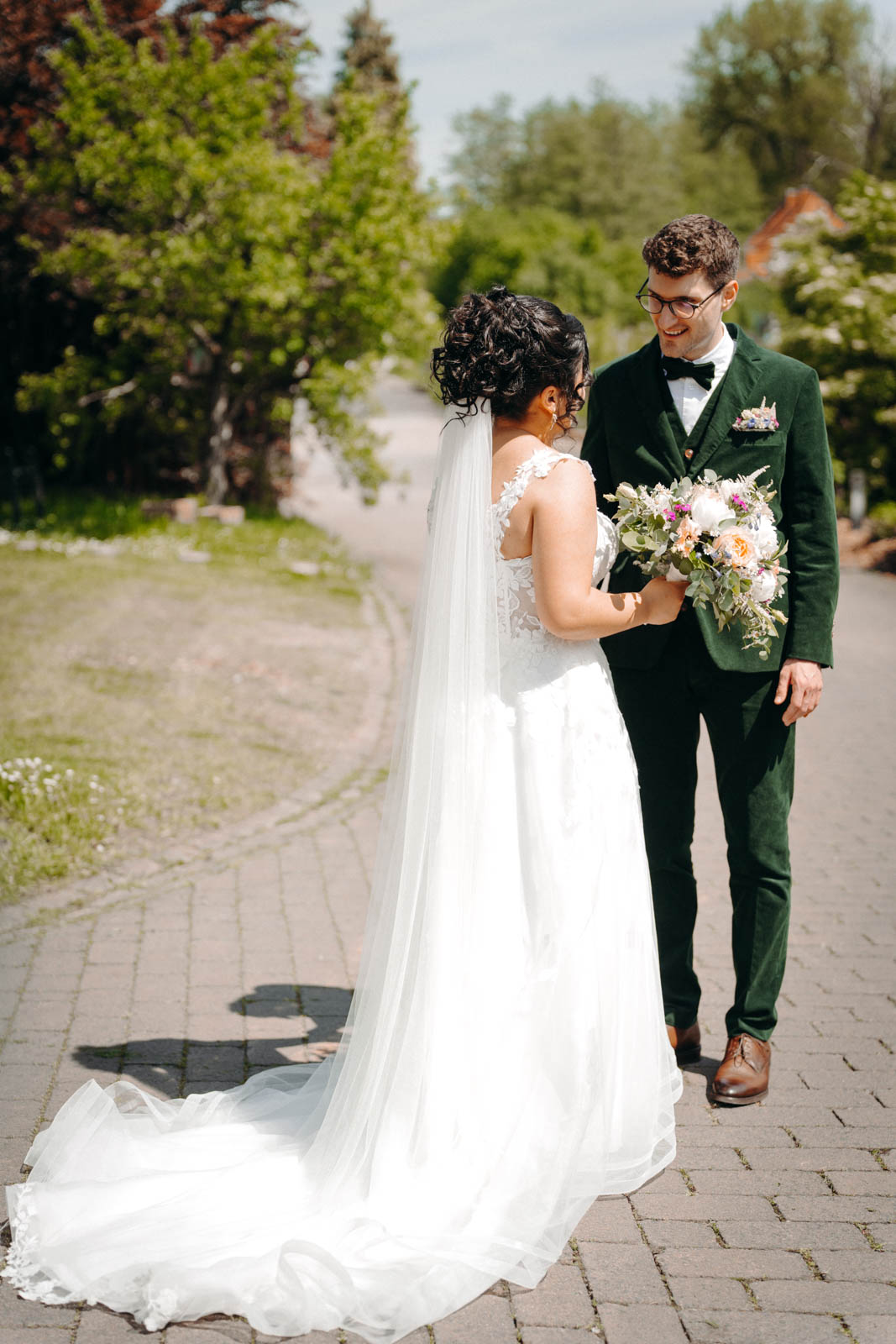 Die Villa Hof Langenborn bietet nicht nur eine traumhafte Kulisse für die Trauung, sondern auch eine Fülle an Möglichkeiten für außergewöhnliche Hochzeitsfotos. Vom verträumten Garten mit romantischen Ecken bis hin zu den historischen Mauern der Villa – überall finden sich wunderbare Orte, die perfekt in Szene gesetzt wurden. Das Brautpaar nutzte die weiten, grünen Wiesen und das elegante Anwesen für romantische Aufnahmen, die ihre Verbindung und den Charme der Hochzeitslocation perfekt zur Geltung bringen. Auch die kleinen Details, wie die liebevoll dekorierten Tische im Außenbereich, die Laternen entlang der Wege und die rustikalen Holzbänke für die Gäste, trugen zur malerischen Atmosphäre bei und sind auf den Fotos festgehalten.