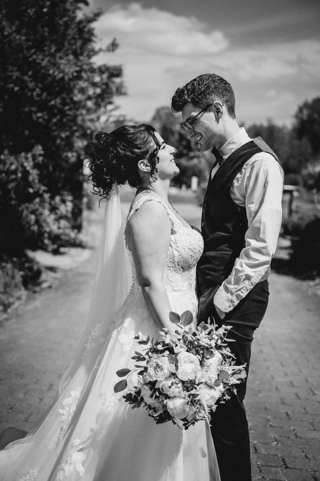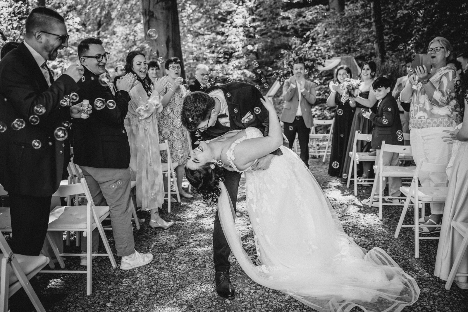 Am Abend wurde die Stimmung durch sanftes Licht und Kerzen noch einmal verstärkt, und die Gäste konnten unter dem Sternenhimmel tanzen. Die weitläufigen Gärten und die schöne Villa boten dabei genügend Raum für Tanz, Gespräche und viele unvergessliche Momente. Für das Brautpaar und die Gäste wurde die Hochzeit so zu einem Erlebnis, das sie sicher nie vergessen werden. Die Villa Hof Langenborn bot den perfekten Rahmen für eine Feier, die sowohl romantisch als auch feierlich war und in der Natur und Eleganz wunderbar zusammenfanden.
