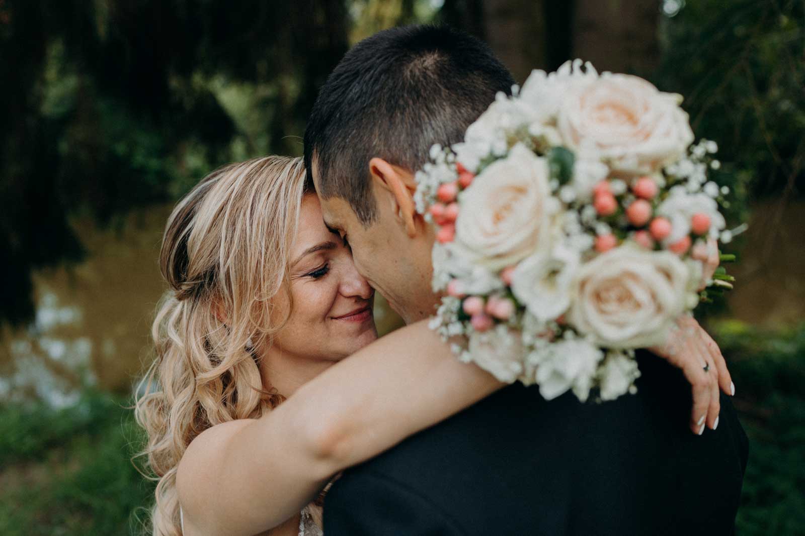 Im Grünen machten wir zunächst die Familienfotos. und im Anschluss das Brautpaarshooting. Dieses fand zur Mittagsstunde statt. Um diese Tageszeit ist es mir wichtig, dass die Sonne nicht zu starke Schatten im Gesicht hinterlässt und die Fotos im besten Fall an schattigen Plätzen gemacht werden. Es gibt noch weitere Möglichkeiten, beispielsweise den Bräutigam so zu platzieren, dass das Gesicht der Braut im Schatten liegt. So können auch in der Mittagssonne wundervolle Fotos entstehen. Das wichtigste ist immer, dass sich das Brautpaar wohl fühlt und Spaß am Shooting hat. Ich denke, das ist mir gut gelungen! 🙂